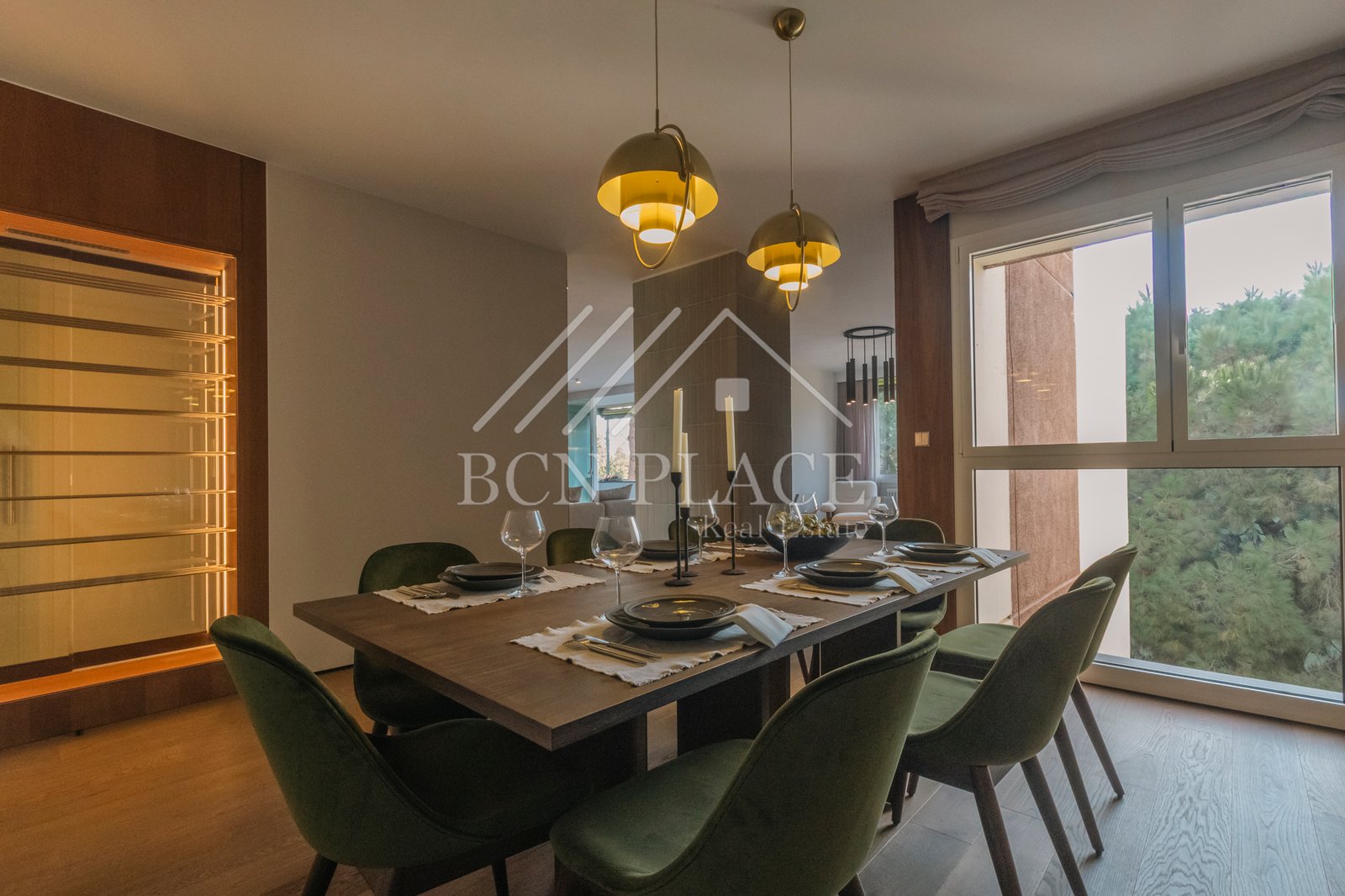 La vivienda dispone de cuatro dormitorios dobles exteriores,una suite principal con vestidor y baño privado, además de cuatro baños completos que garantizan la máxima comodidad. Cuenta también con una zona de servicio independiente con salida directa al balcón, ideal para mayor funcionalidad en el día a día. El amplio salón-comedor de 50 m² se abre a una terraza de 12 m², perfecta para disfrutar del aire libre y las vistas despejadas de la exclusiva zona de Pedralbes.